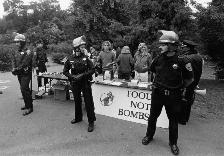 This act of defiance—giving out free food without government permission, in ways that went against the typical charity model, and was connected to a critique of US militarism and the profit-driven food industry—sometimes resulted in police repression. After setting up a Food Not Bombs chapter in San Francisco in the late 1980s, Keith McHenry, one of the organization’s co-founders, was arrested over 100 times, spent over 500 nights in jail, was tortured by San Francisco Police Intelligence officers, and, by 1995, was facing 25 years to life in prison under California’s notorious Three Strikes law—all for the crime of distributing free food that would have otherwise been thrown away. For besides feeding people in need (which all sorts of charities already do), Food Not Bombs gathered homeless people together in ways that made homelessness visible and exposed how gentrification, the widespread waste of food, and government spending on militarism resulted in hunger and even starvation right within the belly of the imperialist beast. At their best, Food Not Bombs chapters also provided a vehicle through which to mobilize homeless people to come together, discuss political questions, have public open mics, and go to protests, thus going beyond meeting people’s needs and towards raising political consciousness, collectivity, and resistance.2