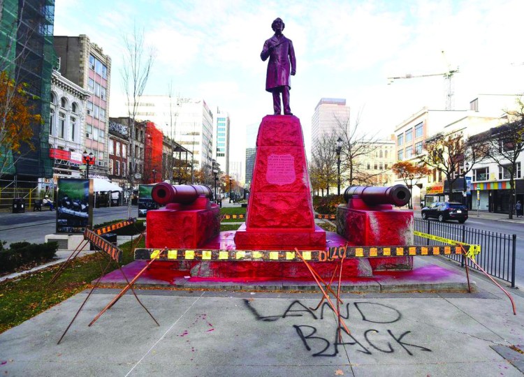 3. Here’s a running list: The monument to John A. Macdonal in Montreal was torn down on 30 August 2020 during a “defund the police” protest; the statue of Egerton Ryerson (an architect of the residential school system), was toppled and beheaded by protesters in Toronto on 6 June 2021 at the site of the university named after him; statues of Queen Victoria and Queen Elizabeth II were toppled in Winnipeg by protesters during Canada Day protests on 1 July 2021; a statue of James Cook, the colonizing British Royal Navy captain, was toppled by protesters in Victoria, B.C. on 1 July 2021 and then dragged and tossed into a nearby harbour; and another John A. Macdonald statue was torn down by protesters in Hamilton, Ontario on 14 August 2021. Numerous other statues were pre-emptively placed into storage by government officials in Baden, Picton, and Kingston, Ontario; Regina and Lebret, Saskatchewan; and in Charlottetown, Prince Edward Island. What’s equally remarkable to this widespread destruction of the idols of the colonial bourgeoisie is how such acts which in years past would have been repressed swiftly were allowed to proceed with little-to-no harassment from the pigs. While nothing less than the dramatic destruction of these genocidal idols is entirely merited, we also need to interrogate whether or how this may assist the Trudeau government and the bourgeoisie as a whole by, first, giving the colonial regime of Canada the facelift it was so desperately looking for, and second, for letting a rebellious people stomp around and vent a bit.