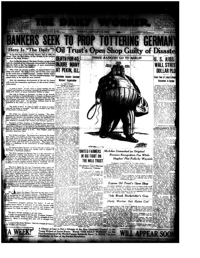 The CP established its main publication for a mass audience, the Daily Worker, in 1924, after Comintern prodding to establish a daily newspaper in English. The Daily Worker transmitted the CP’s views on everything from international events to US politics to sports, and alerted readers to changes in the CP’s line and leadership. In addition to the Daily Worker, various local, regional, and “shop” (serving a particular factory or factories) newspapers developed, as well as periodicals in languages other than English. Furthermore, many CP-led organizations developed their own regular publications, creating a considerable network of written propaganda. In late 1925, the CP reported having “twenty-seven publications in nineteen languages with a total circulation of 177,250.”68 The practice of developing a diverse array of publications serving different political purposes and audiences while maintaining a regular centralized publication for a mass audience is certainly something to emulate. However, communist publications should avoid dogmatic or, as Mao put it, “stereotyped Party writing,” which CP publications certainly suffered from.69 Reflecting a substantial degree of what Lenin called economism, the Daily Worker tended to put too much focus on the immediate conditions of the factories and narrowed the focus of its audience to their immediate conditions of exploitation.