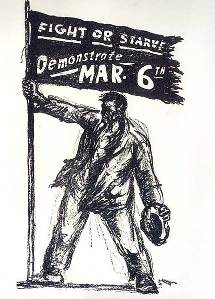 The revolutionary mood at the end of WWI was the background for a wave of labor strikes across the country. The courageous textile workers of Lawrence, Massachusetts went out on strike again, as did coal workers all over the country. Seattle was shut down by a five-day general strike directly inspired by the Russian Revolution; one pamphlet disseminated there declared: “The Russians have shown you the way out. What are you going do about it?” The spontaneous zeal, among workers engaged in class struggle, for taking up the lingo of the Russian Revolution was taken further by miners in Butte, Montana, who declared their strike to be led by “The Soldiers’, Sailors’, and Workers’ Council.”31 And 365,000 steel workers on strike shut down their industry for months. A key leader in the 1919 steel strike was William Z Foster, who would come to play a leading role in the Communist movement in the coming decades, but was not yet a Communist at that time. Neither of the two newly-formed communist parties played any significant role in relation to this strike wave outside of issuing written propaganda, often rather dogmatic in character, to strikers, although some future Communist Party members and leaders were on the frontlines of these class struggles.32