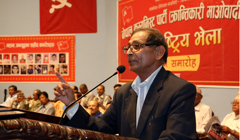 General Secretary of the Communist Party of Nepal-Revolutionary Maoist, Mohan Baidya (Comrade Kiran), speaking at a programme in Kathmandu on 21 June 2016.