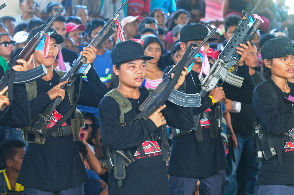 Red fighters of the New People’s Army stand with pride in service to the people and the new democratic revolution amidst a presentation to the masses outside the southern city of Butuan.