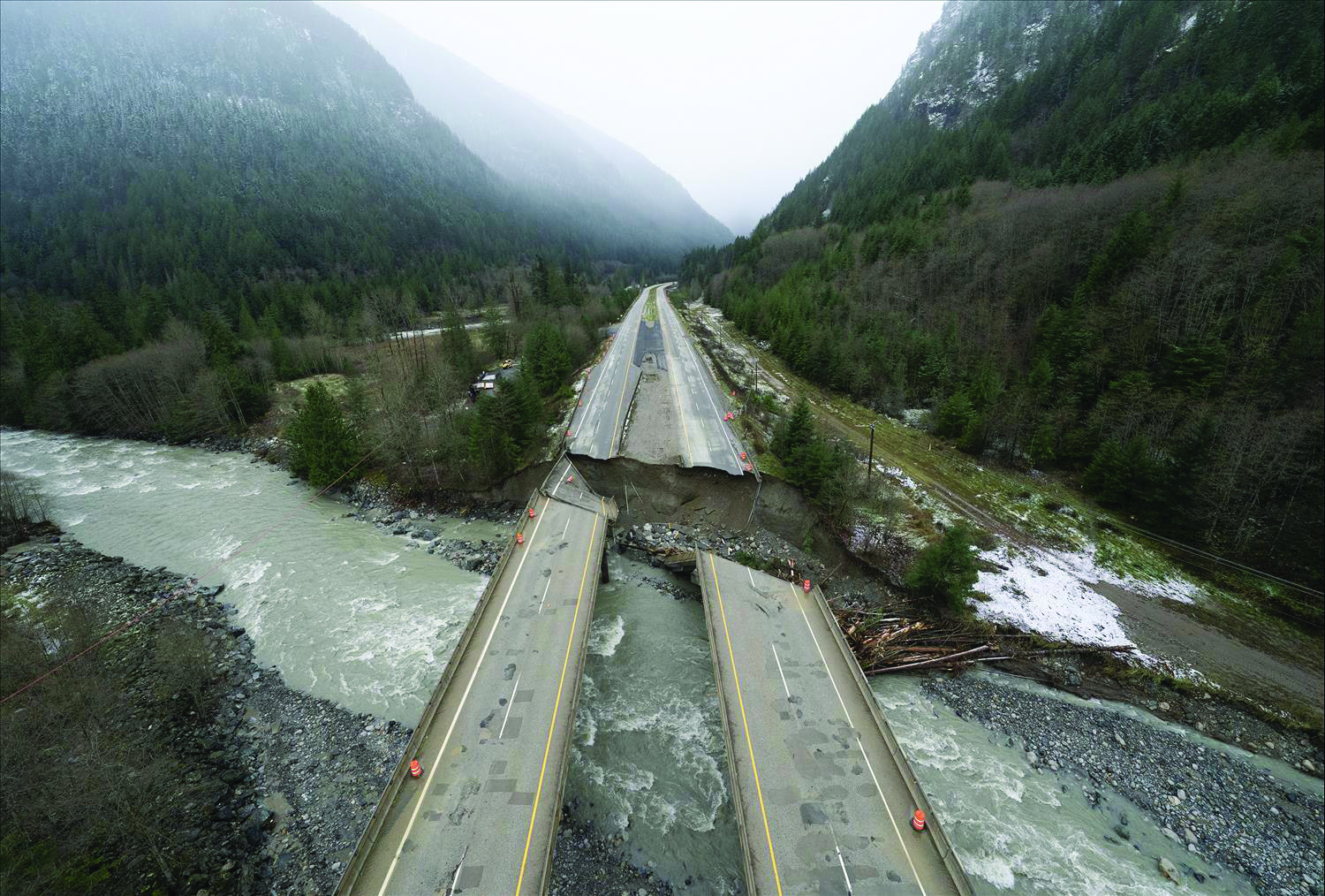 The Coquilla Highway lies severed in half by landslide.